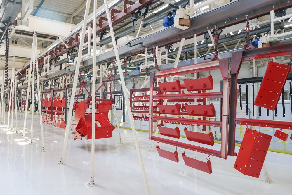 Новая линия оснащена передовым оборудованием высокой степени автоматизации. Помимо движения конвейера автоматизированы многие операции, включая смешивание и приготовление лакокрасочного материала, дожиг газов, фильтрацию и деминерализацию воды, необходимой для подготовки поверхности. Комплекс включает в себя современную лабораторию. В составе линии также предусмотрены печь пиролизного обжига и камера мойки высоким давлением для очистки оснастки.